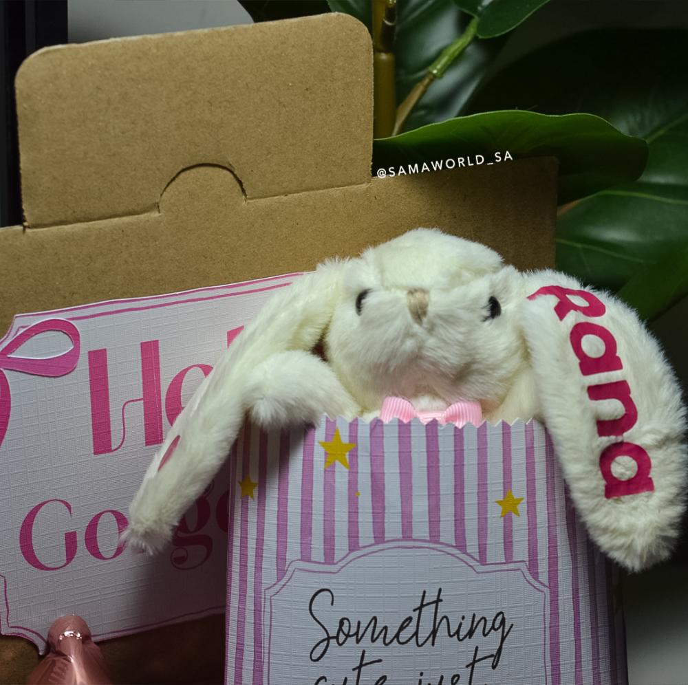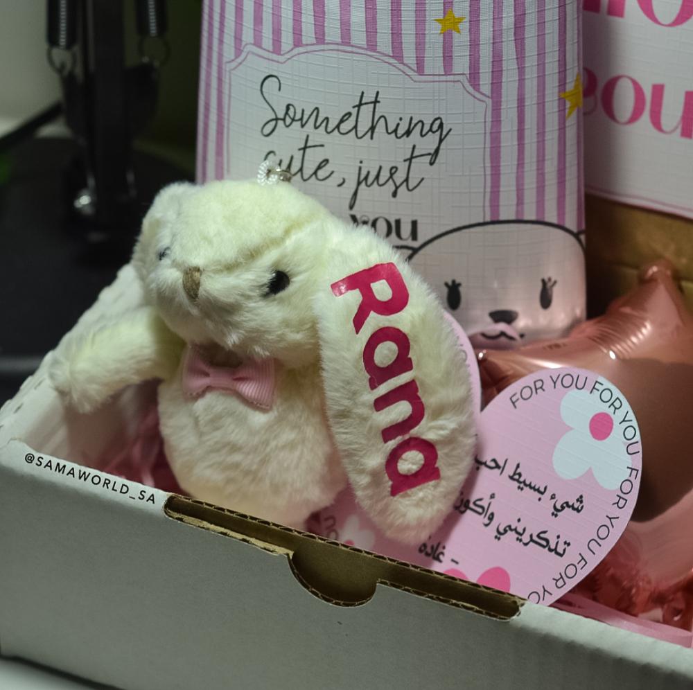 يحتوي على بالون نجمة لامع يضيف لمسة فرح، وميدالية أرنب لطيف باسمها ، مع كرت مخصص بكلماتك الخاصة 🎀